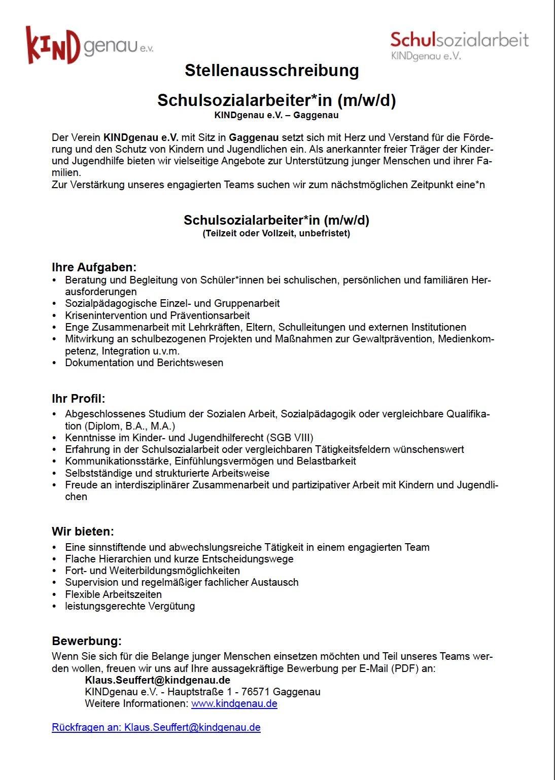 Wir von KINDgenau e.V. in Gaggenau suchen neue Übungsleiter*innen für unser Jugend- und Familienzentrum (JuFaZ) sowie für das Spielmobil!