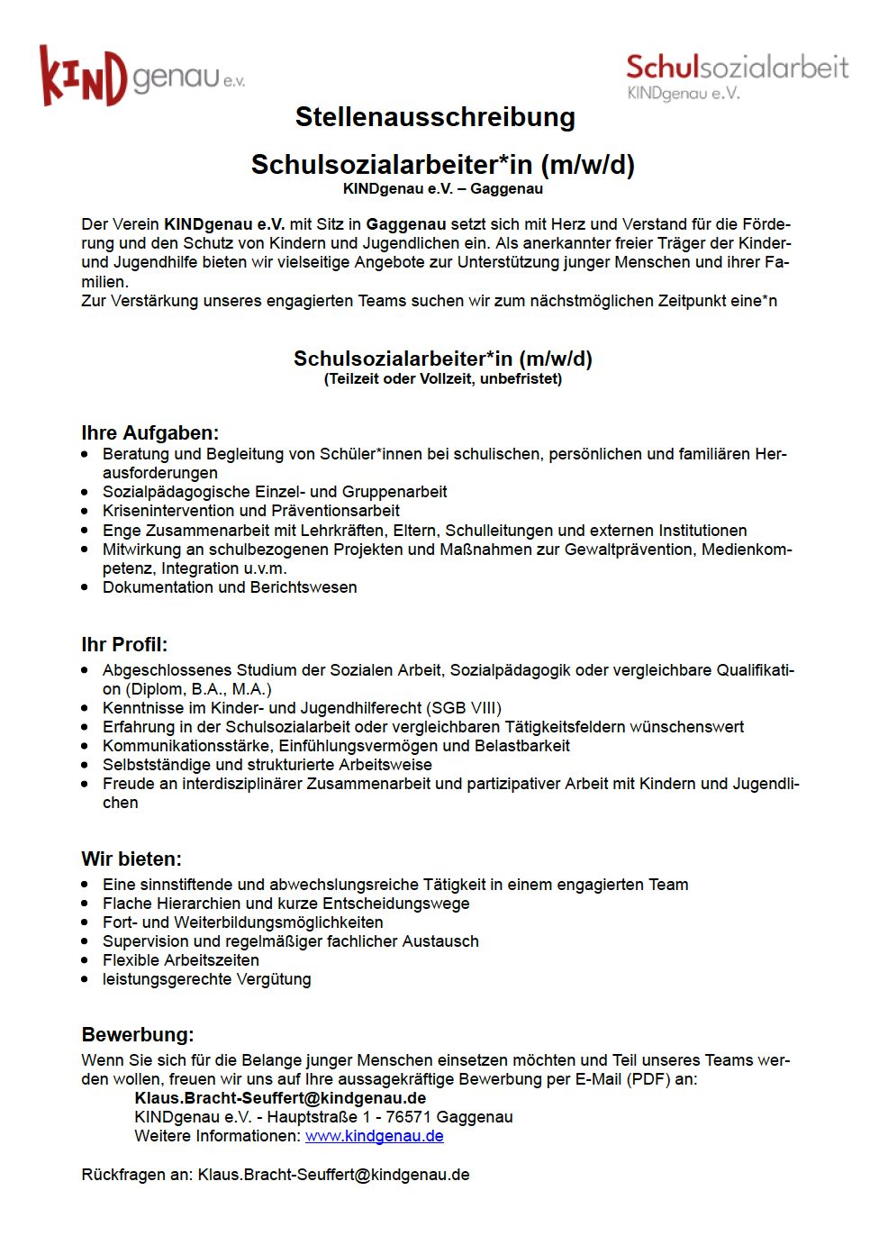 Wir von KINDgenau e.V. in Gaggenau suchen zwei neue Bufdi’s ab 18 Jahren für den Zeitraum von September 2025 bis September 2026!