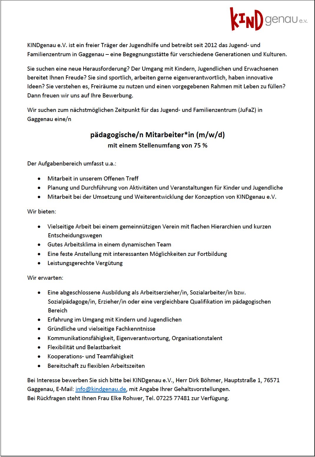 Wir von KINDgenau e.V. in Gaggenau suchen neue Übungsleiter*innen für unser Jugend- und Familienzentrum (JuFaZ) sowie für das Spielmobil!